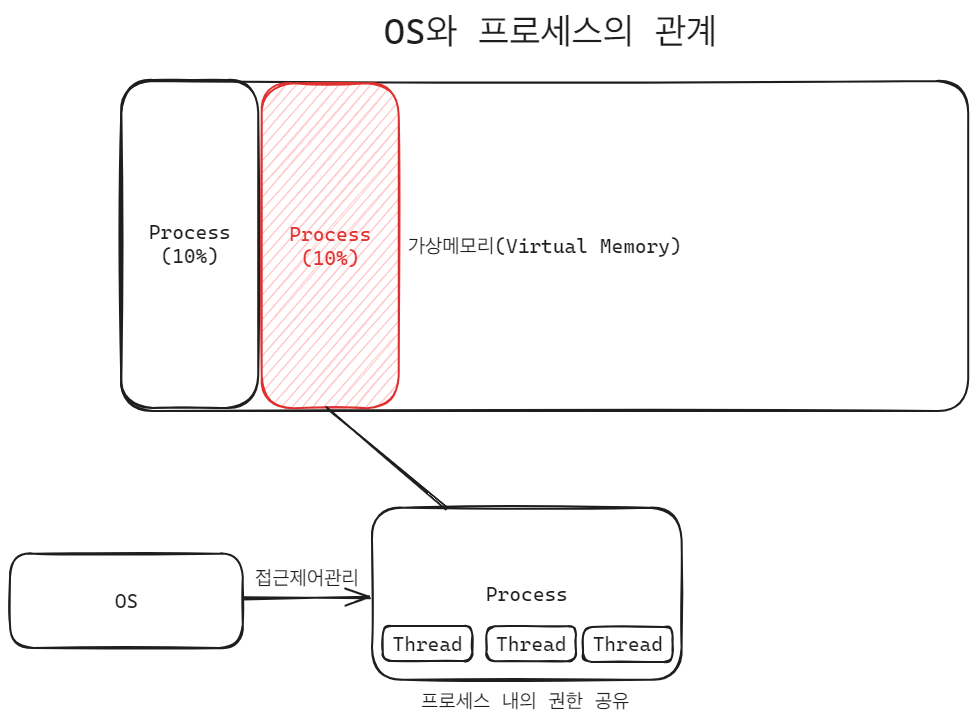 이러한 프로세스를 구성하는 것이 스레드이다. 모든 프로세스 내에는 하나 이상의 스레드가 존재한다.