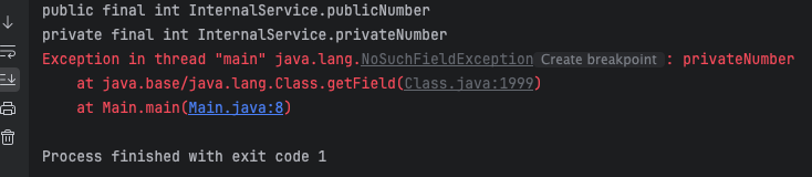 System.out.println(internalService.getDeclaredField("privateNumber")); // InternalService.privateNumber