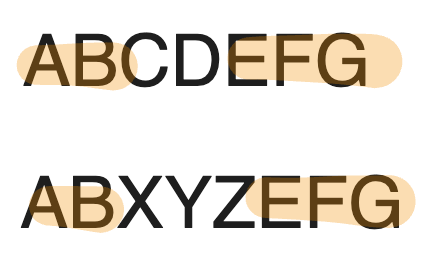 설명을 위해 그림으로 설명하겠습니다. 아래와 같이 두 문자열이 존재한다고 가정해봅시다.