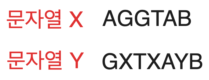 문자열 X는 AGGTAB, 문자열 Y는 GXTXAYB입니다.