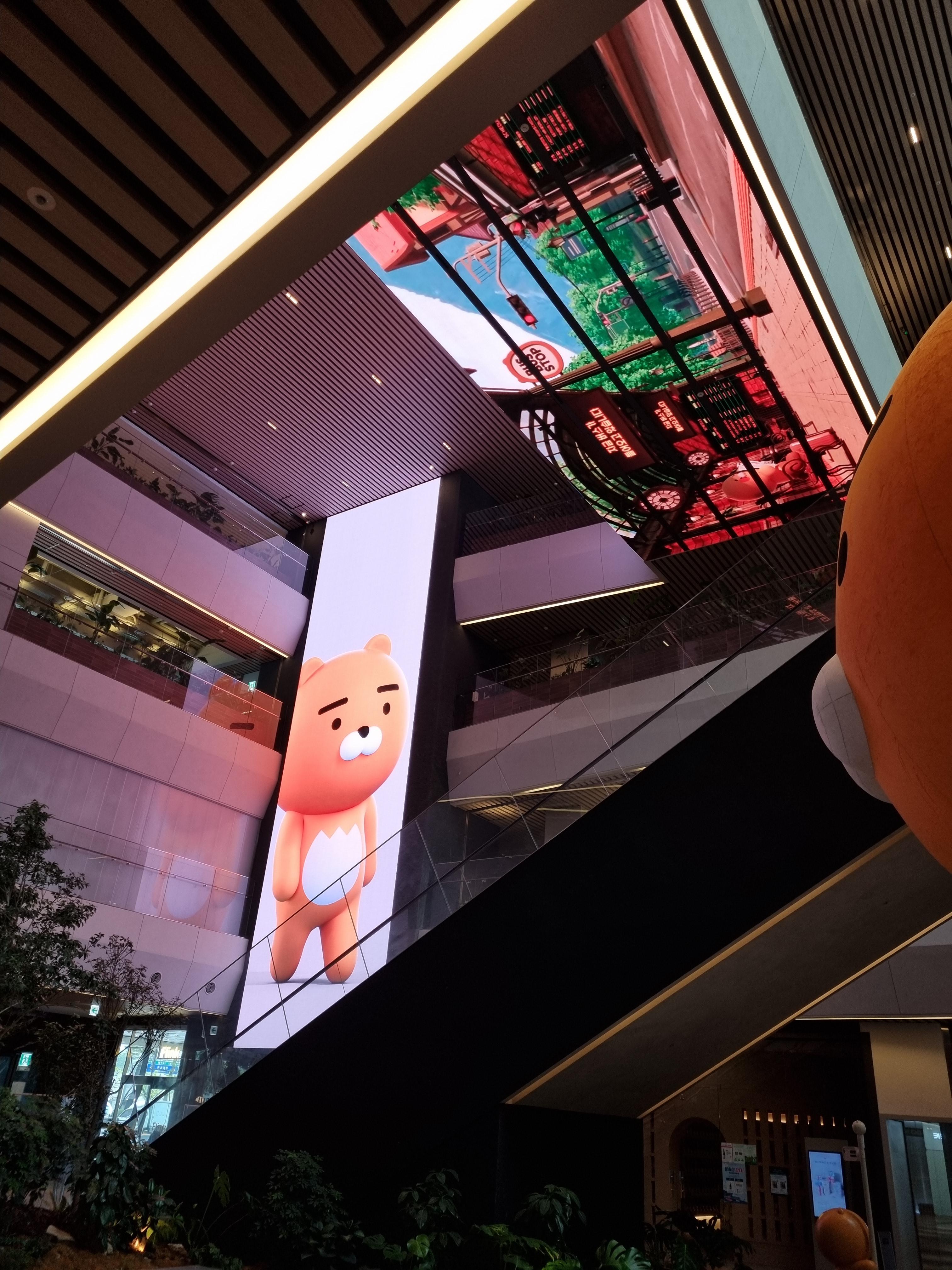 역시 판교라 그런지 지하철 에스컬레이터부터 벽에 인프콘 광고가 붙어있었는데 참 신기했습니다. 저거 할 때마다 매번 참가 추첨 넣었던 것 같은데... 언제쯤 가볼 수 있을까요ㅠ 역 나오자마자 앞에 카카오 아지트가 있어서 들어갔습니다. 왕크니까 왕귀여운 춘식이랑 라이언이 반겨줬습니다. 2층 3층도 가보고 싶었는데 아쉽게도 주말이라 막아놓은 건지 가보진 못했습니다. 사실 카카오 아지트 전체가 참 신기했는데(이게 회사라고...?!) 막 이것저것 사진 찍으려니 뭔가 촌놈 같아서... 자존심 상하기도 하고 약간 산업 스파이... 같기도 해서 원래 판교인인척 자연스럽게 행동했습니다.