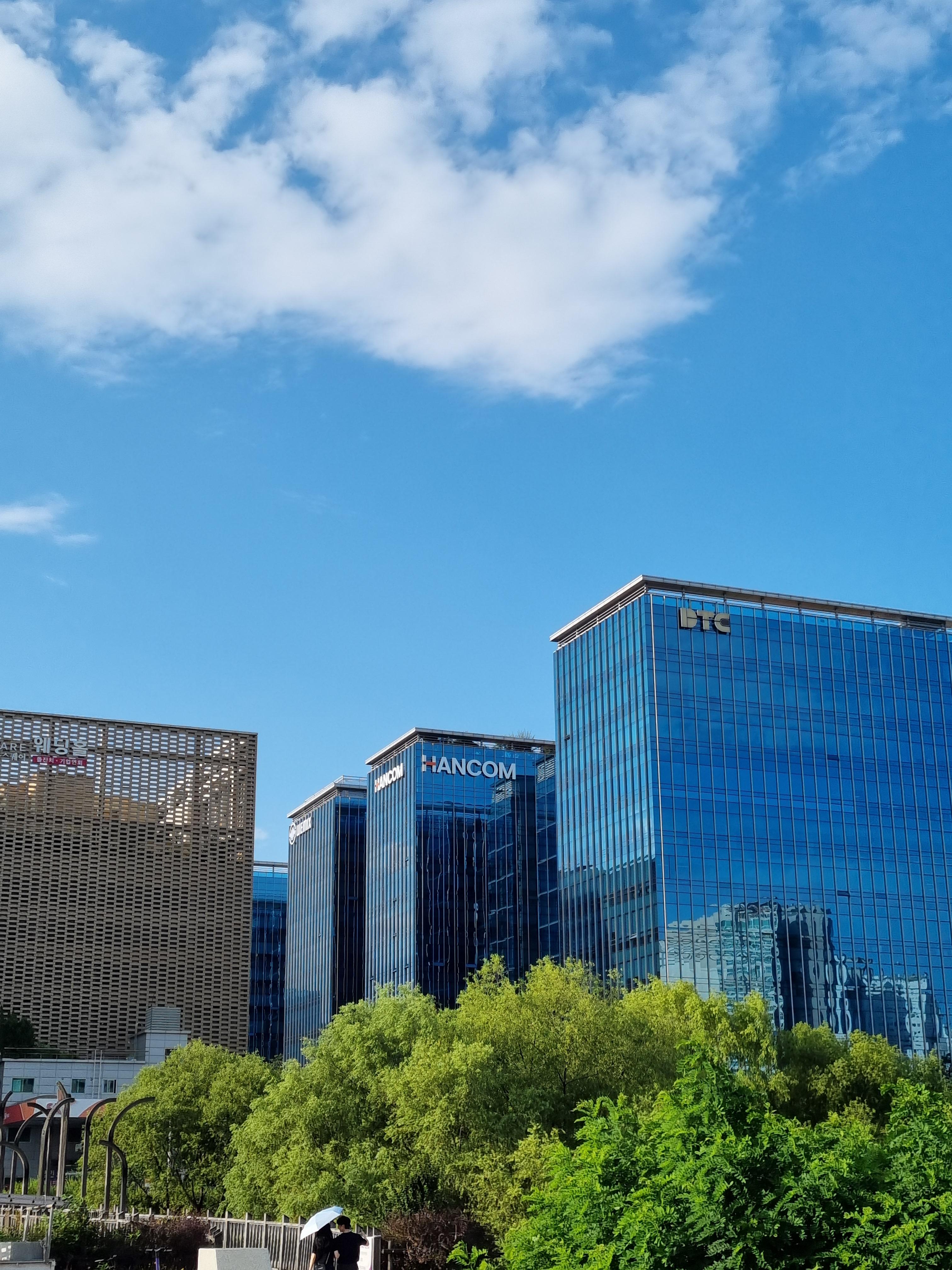 온 김에 뽕을 뽑아야겠다고 생각해서 무식하게 지도 보면서 이곳저곳 돌아다녔던 것 같습니다. nc소프트, 한글과컴퓨터, 위메이드, 넥슨, NHN, 안랩, 그 밖의 익숙한 회사들의 사옥이 참 많았습니다. 친구들한테 사진 보여주면서 판교 갔다왔다고 얘기하니까 전부 거길 왜...? 라는 반응이더라고요... 하긴 지금 생각해보니까 폭염주의보까지 뜬 황금같은 일요일에 남들이 다니는 회사 탐방 다녔다고 하면 미친사람 취급받을거 같긴하네요 허허.. 그래도 동기부여도 되고 너무 좋았던 것 같아요. 회사 이곳 저곳 둘러보면서 공부 열심히 해서 꼭 판교에서 일해야겠다는 다짐을 하고 돌아왔습니다.